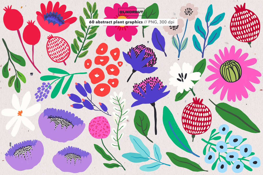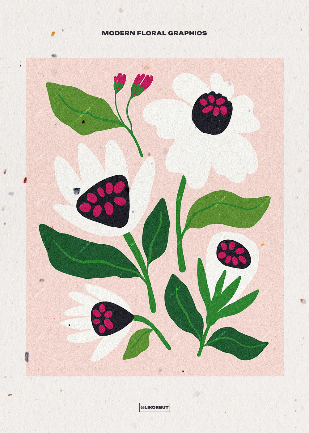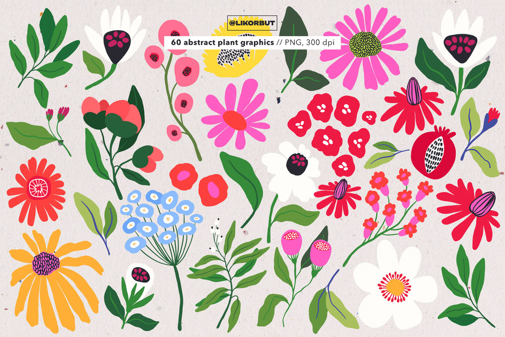 Create stunning designs with Abstract Modern Florals! Our collection of vibrant abstract flowers, plants, leaves, and other floral graphics will help you create beautiful designs for any project. With bright and cozy colors to choose from and 6 ready-to-use cards included, you can easily make your project stand out from the crowd. Get creative with Abstract Modern Florals today!