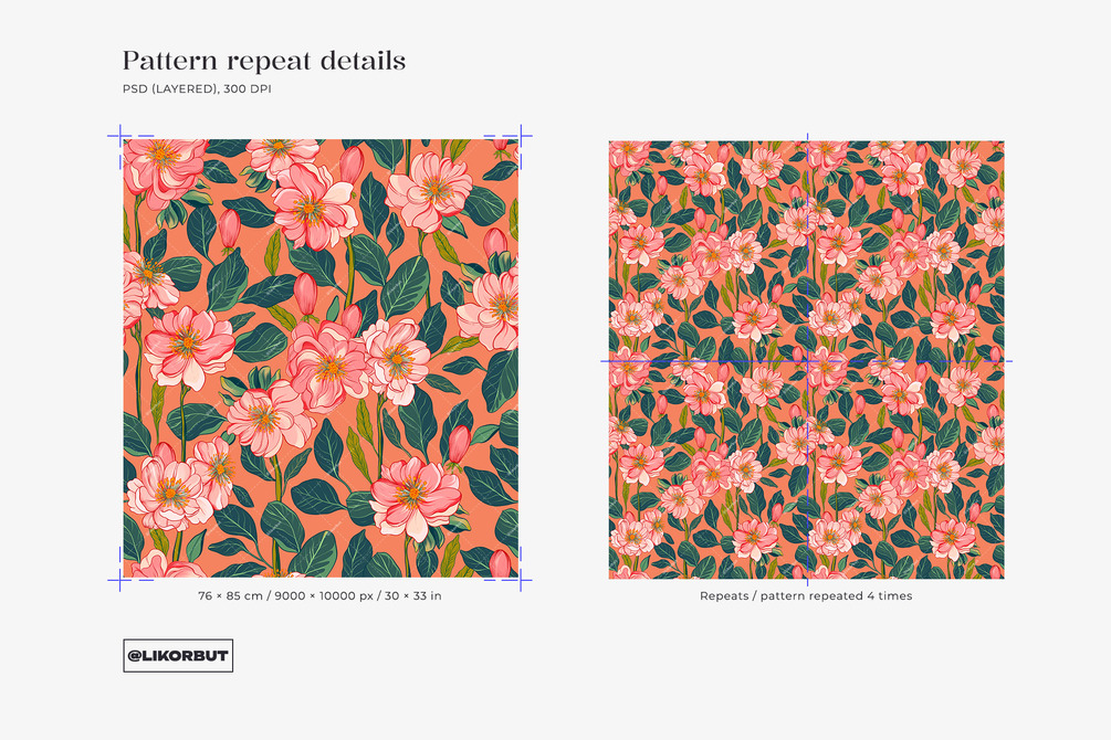 Pattern Repeat: 76 × 85 cm at 300 dpi // 9000 × 10000 px
