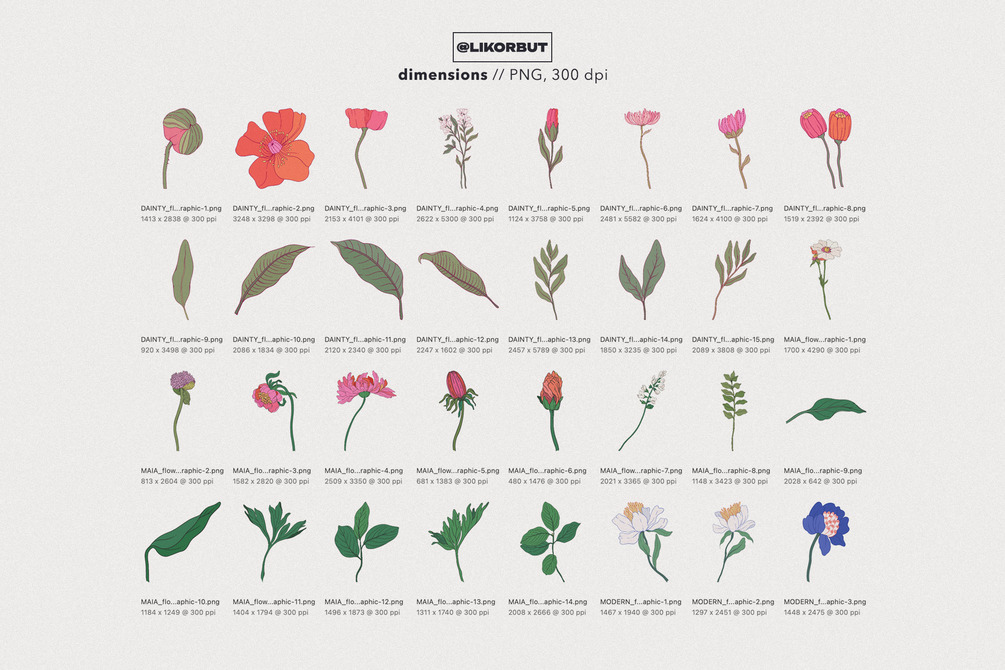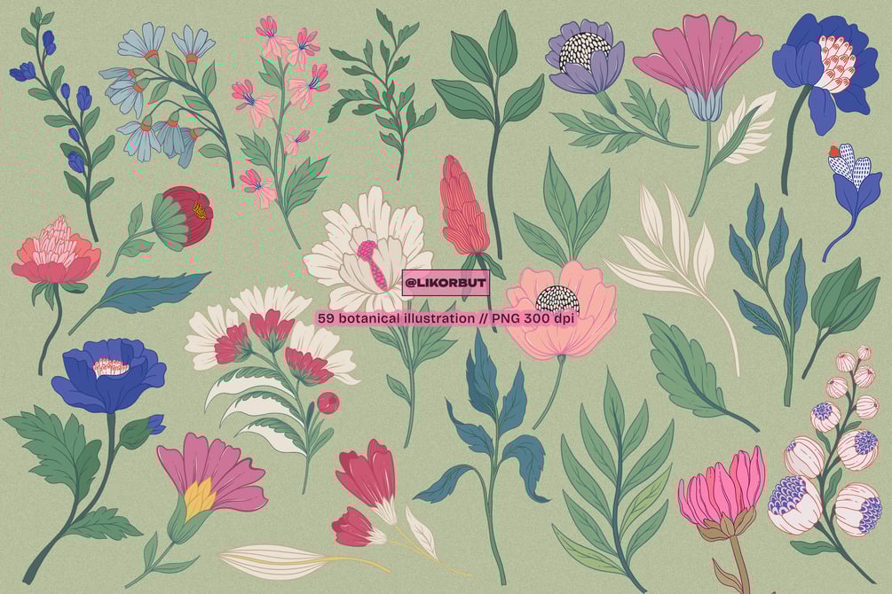 • Set includes 59 plant graphics, PNG